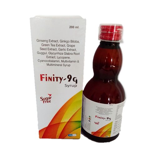 FINITY-9G Syrup is a comprehensive nutritional and antioxidant formulation containing Ginseng, Ginkgo Biloba, Green Tea Extract, Grape Seed Extract, Garlic Powder, Guggul, Ginger Root Extract, Green Coffee Bean Extract, Glycyrrhiza glabra Extract, Benfotiamine, Biotin, Lycopene, Folic Acid, Multivitamins, Multiminerals, and Antioxidants. This advanced liquid formulation is designed to support overall health, vitality, and metabolic balance with enhanced absorption.